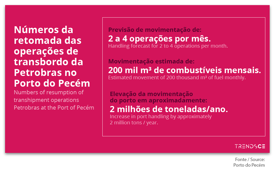 Dados do Governo do Estado do Ceará apresentam que as últimas movimentações de transbordo de combustíveis no Porto do Pecém resultaram em 629.981 toneladas, no ano de 2013, e 707.612 toneladas no ano seguinte, em 2014. A previsão para essa nova leva é uma movimentação estimada de 200 mil m³ de combustíveis mensais.