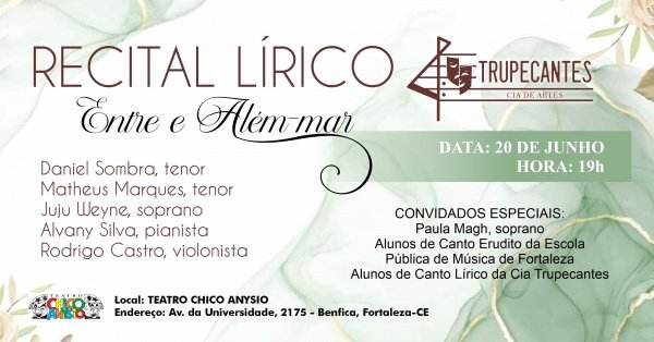 A Trupecantes – Companhia de Artes realiza o recital Entre e Além-mar, uma experiência musical que propõe uma travessia por tempos, mares e memórias. A apresentação reúne vozes líricas e instrumentistas em um repertório que combina emoção, técnica e narrativa.