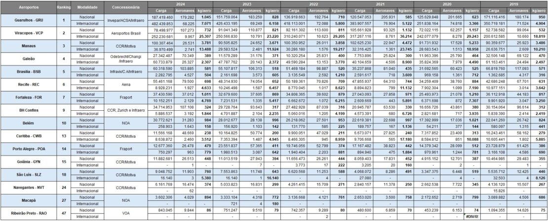 Conforme dados na Agência Nacional de Aviação Civil (ANAC) aeroporto em 2024 já superou seu volume de cargas nacionais e internacionais, se comparado há 2019 ano pré-pandemia do Covid-19.